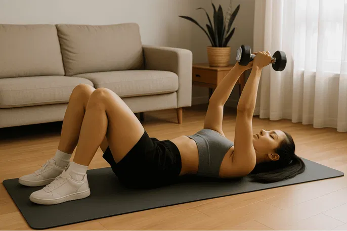 - Supino com halteres no chão ou em superfície firme: imita o supino reto.